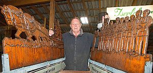 Hugo Rickers hat die Holztafeln des Maibaums mit spezieller Witterungsschutzfarbe lackiert.