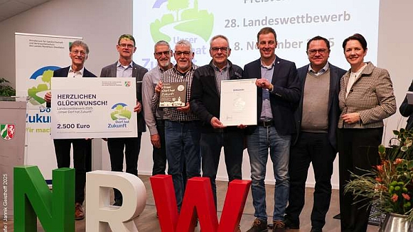 Balve - Nun wurde die Auszeichnung vergeben. 33 Dörfer hatten beim Landeswettbewerb mitgemacht. Die für ländliche Entwicklung zuständige Ministerin Silke Gorißen hatte am Samstag ins Versuchs- und Bildungszentrum Landwirtschaft Haus Düsse der Landwirtschaftskammer Nordrhein-Westfalen in Bad Sassendorf eingeladen. Dort wurden bei einem feierlichen Festakt die vier Dörfer Boisheim (Kreis Viersen), Darup (Kreis Coesfeld), Helberhausen (Kreis Siegen-Wittgenstein) und Lenne (Hochsauerlandkreis) als Golddörfer prämiert. Und die Vertreter aus Mellen nahmen ihre Silbermedaille entgegen.